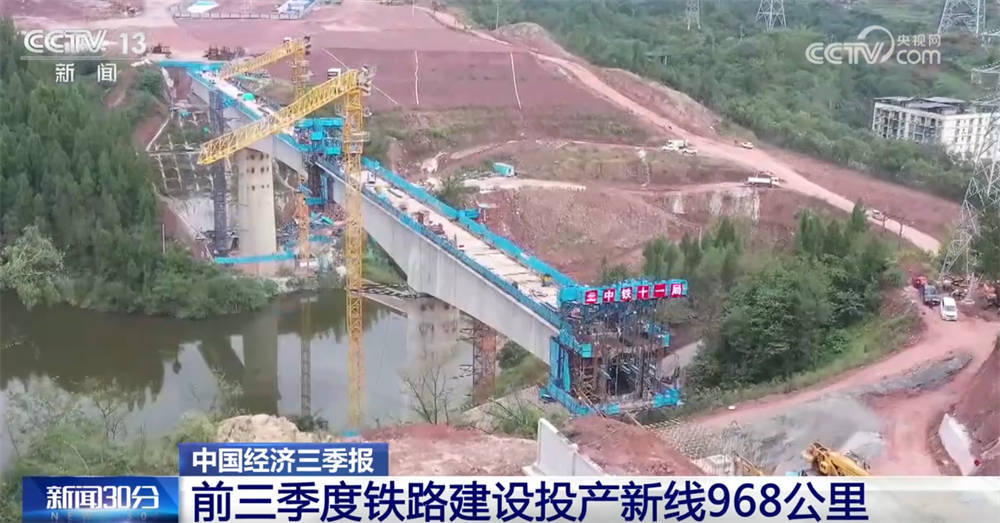 前三季度,铁路建设优质高效推进,投产新线968公里。渝厦高铁重庆至黔江段、沈阳至长白山高铁、襄阳至荆门高铁等一批新线、新站开通运营,进一步完善了区域路网布局,有效带动了沿线产业升级和资源开发。